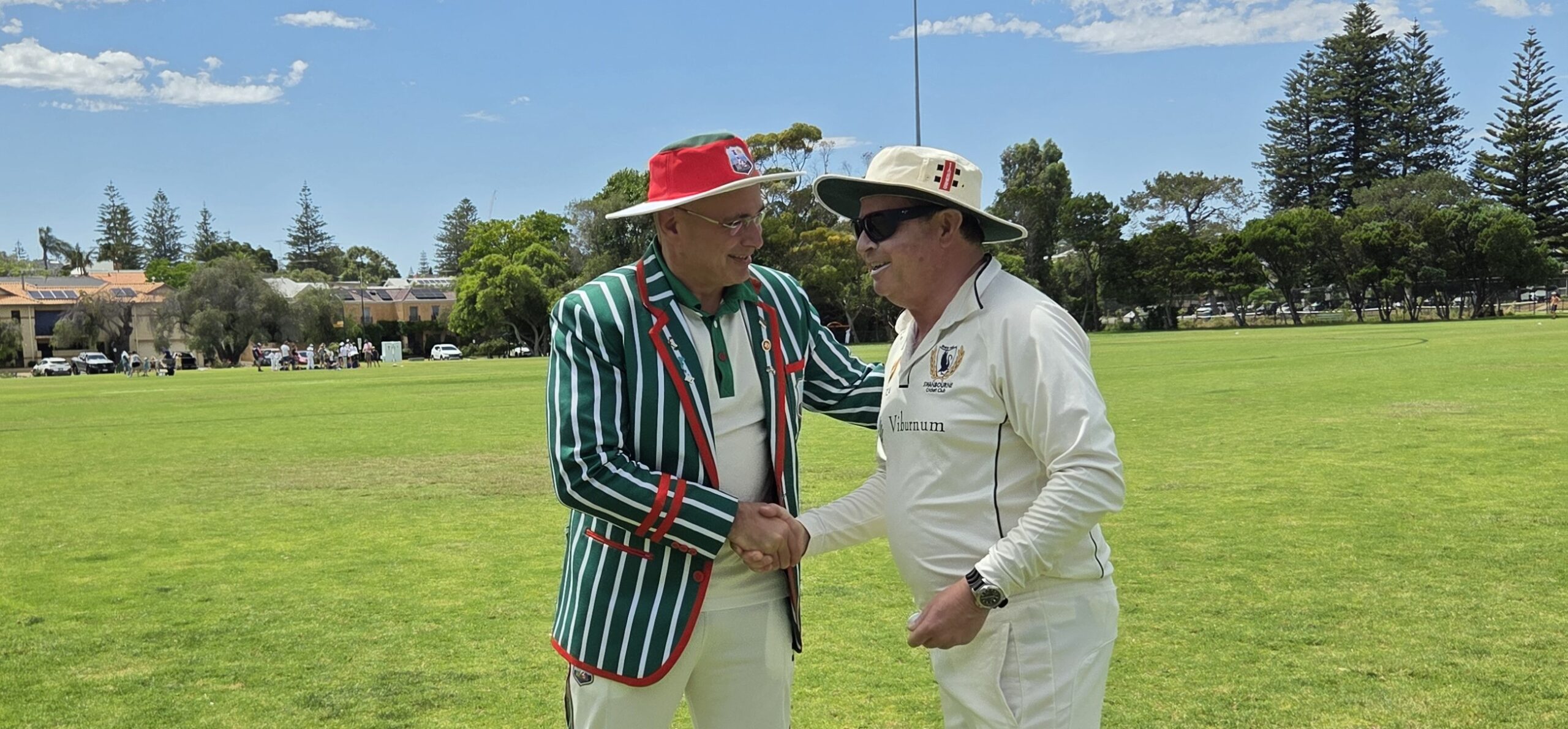 Dev had no second thoughts when handing over the captaincy to Cam in the second match of the Pilgrims’ Australia tour. The idea paid off, not least because the visitors were facing Swanbourne CC. This is the family-friendly club in one of Perth’s residential suburbs, for whom Cam has been playing for the last 13 years during the winter months. He knew the opposition so well and made use of altogether 12 Pilgrim’s individual skills in such a competent manner that he led them to an unforgettable victory – by seven runs in the penultimate over.