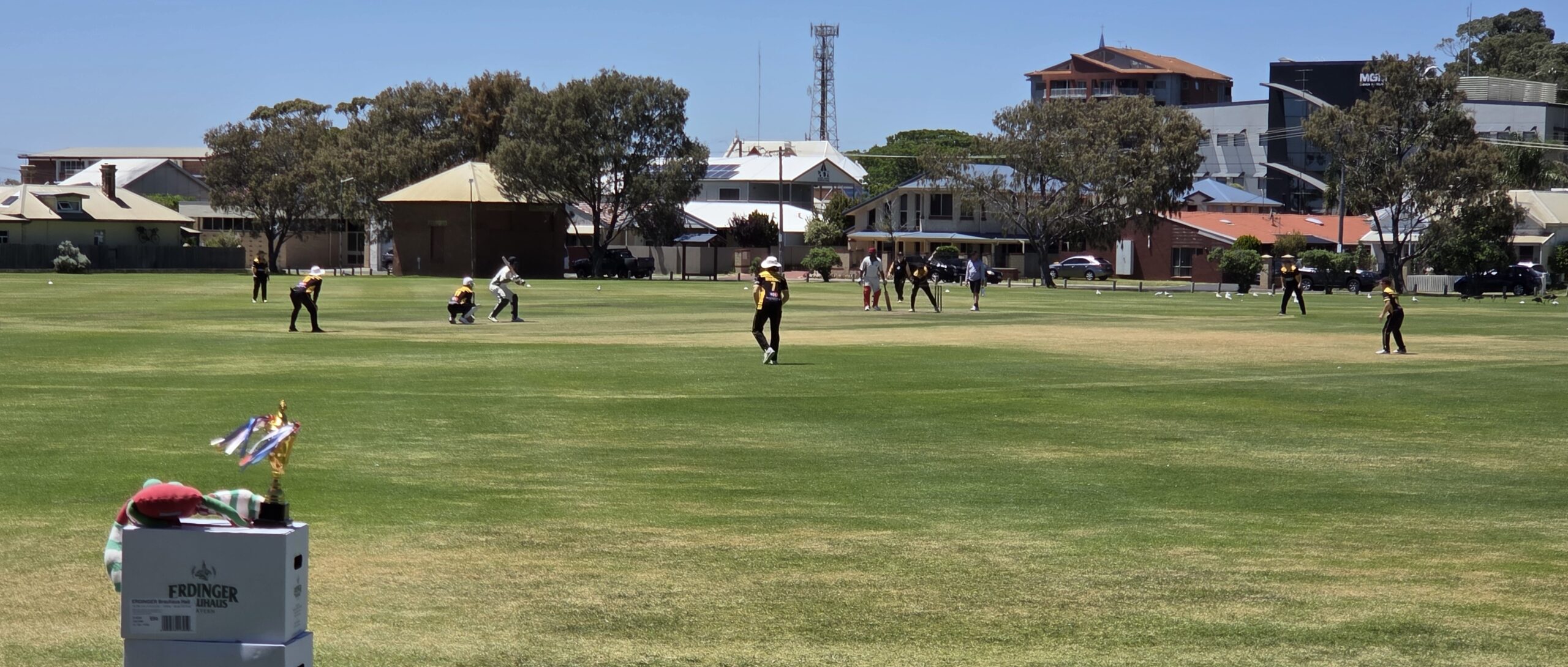 Fazit: Der HPCC schlug gut, gab sich enthusiastisch geschlagen und erzielte eine Gesamtpunktzahl, mit der er an vielen Tagen viele Teams schlagen würde. Leider war dies nicht einer dieser Tage. Bunbury war ruhiger, sauberer und wurde von Schlagmännern angetrieben, die das Einsammeln von Runs wie eine Probe für eine Höhepunkte-Schow behandelten. Spieler des Spiels war Abhik – denn schnell zu punkten, zu bowlen und trotzdem zu verlieren, macht einen irgendwie unvergeßlich. Cricket wurde gespielt. Lektionen wurden gelernt. Und alle waren sich einig, daß es viel knapper war, als es die Scorecard vermuten läßt – meist während sie ein Getränk in der Hand hielten, das kostenlos von den Sponsoren der Pilgrims, der bayerischen Brauerei ERDINGER, zur Verfügung gestellt wurde. Bunbury holte sich verdient den Pokal, nicht zuletzt, weil sie sich als letzte Zuflucht auf zwei Profis verlassen hatten. Die Pilgrims reisten ab mit blauen Flecken, Geschichten und einer Tour, die nicht wegen des Ergebnisses in Erinnerung bleiben wird, sondern wegen der Art und Weise, wie sie gespielt wurde. Was für ein Ende der Australien-Tour der Heligoland Pilgrims.